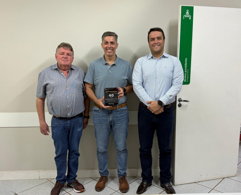 Entre as homenagens recebidas, destaca-se a do Banco do Brasil, parceiro da cooperativa, que realizou uma visita institucional para parabenizar a Unimed Anhanguera pela data comemorativa. O encontro reforçou a parceria entre as instituições e evidenciou a importância da cooperativa no cenário regional da saúde. Participaram da recepção o presidente da Unimed Anhanguera, dr. Marcelo Torrente Silva, o diretor de Mercado e Finanças, dr. Hélio Anselmo Andrade e o representante do Banco do Brasil, Rodrigo Fernandes Diniz Scalvi — gerente de relacionamento em exercício.